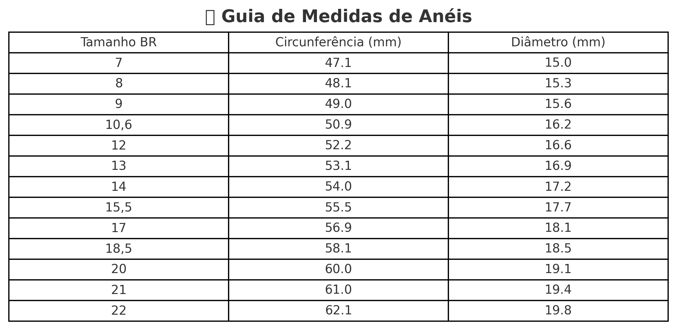 Nota: Se a medida do seu dedo estiver entre dois tamanhos, recomendamos escolher o tamanho maior para maior conforto.